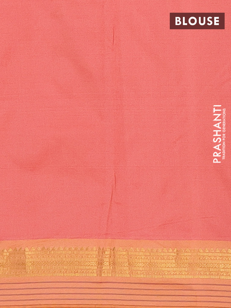 Arani semi silk saree peach shade with rudhraksha & paisley zari woven buttas and zari woven border