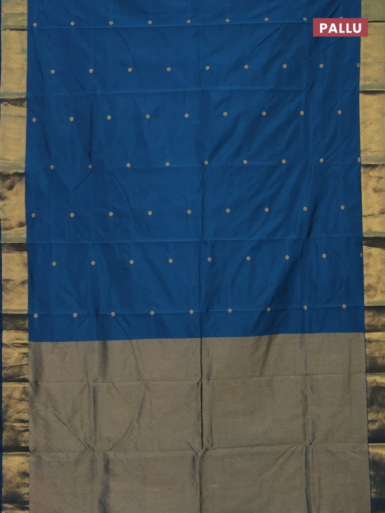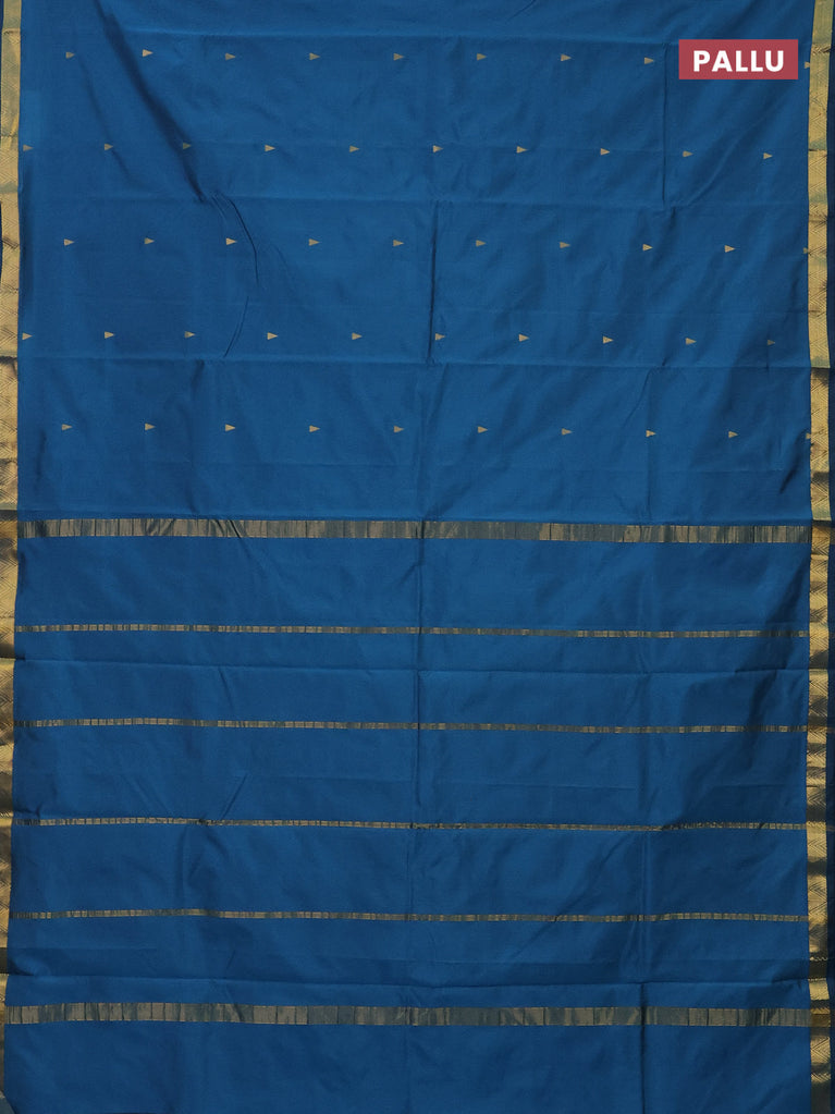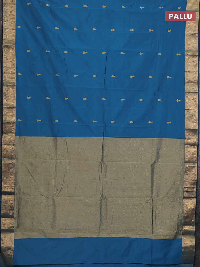 Arani semi silk saree peacock blue with zari woven rudhraksha buttas and zari woven border