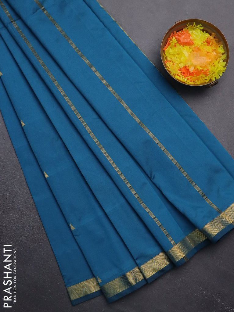 Arani semi silk saree peacock blue with zari woven thilak buttas and zari woven border
