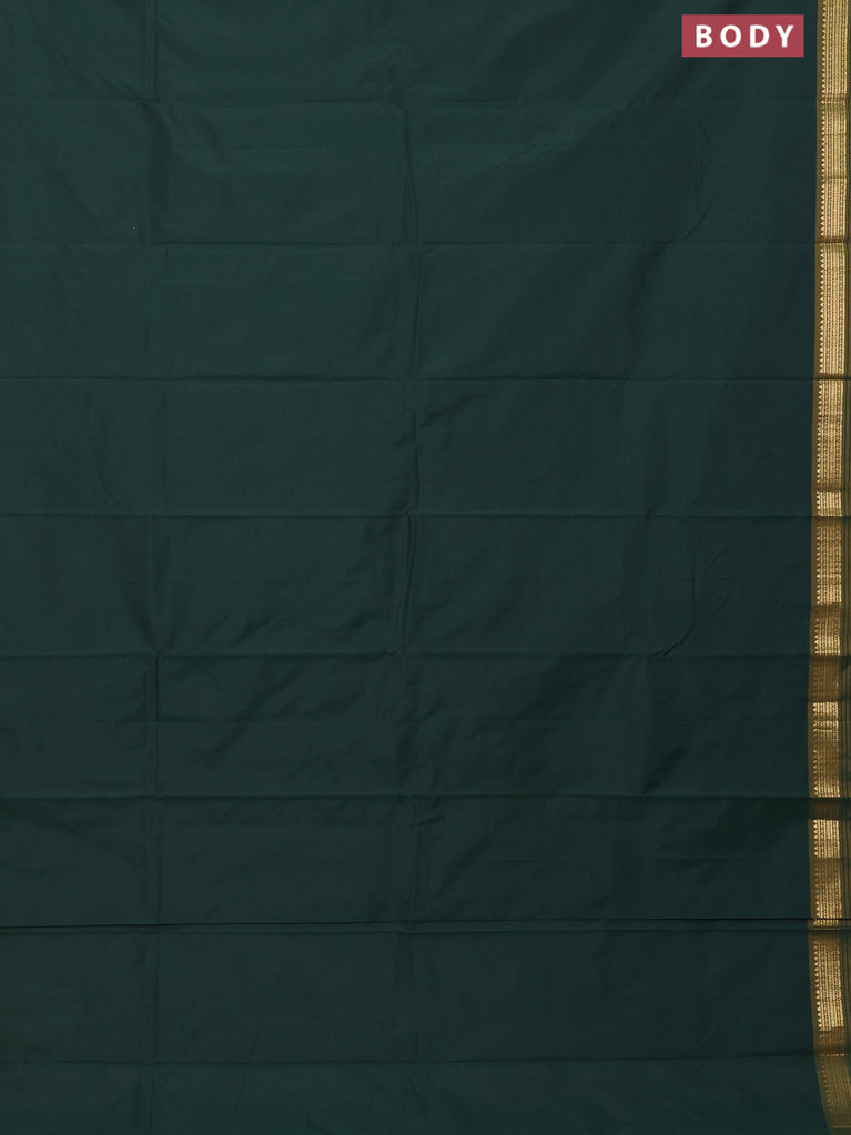 Arani semi silk saree peacock green with plain body and small zari woven border