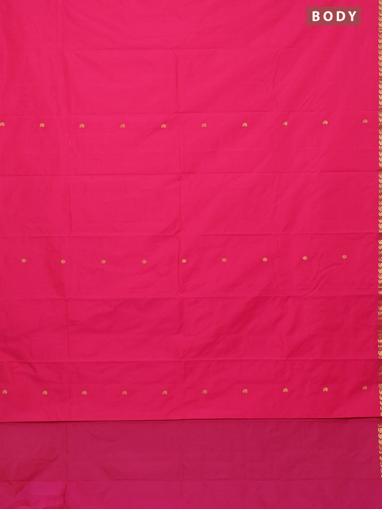 Arani semi silk saree pink with silver zari woven buttas in borderless style