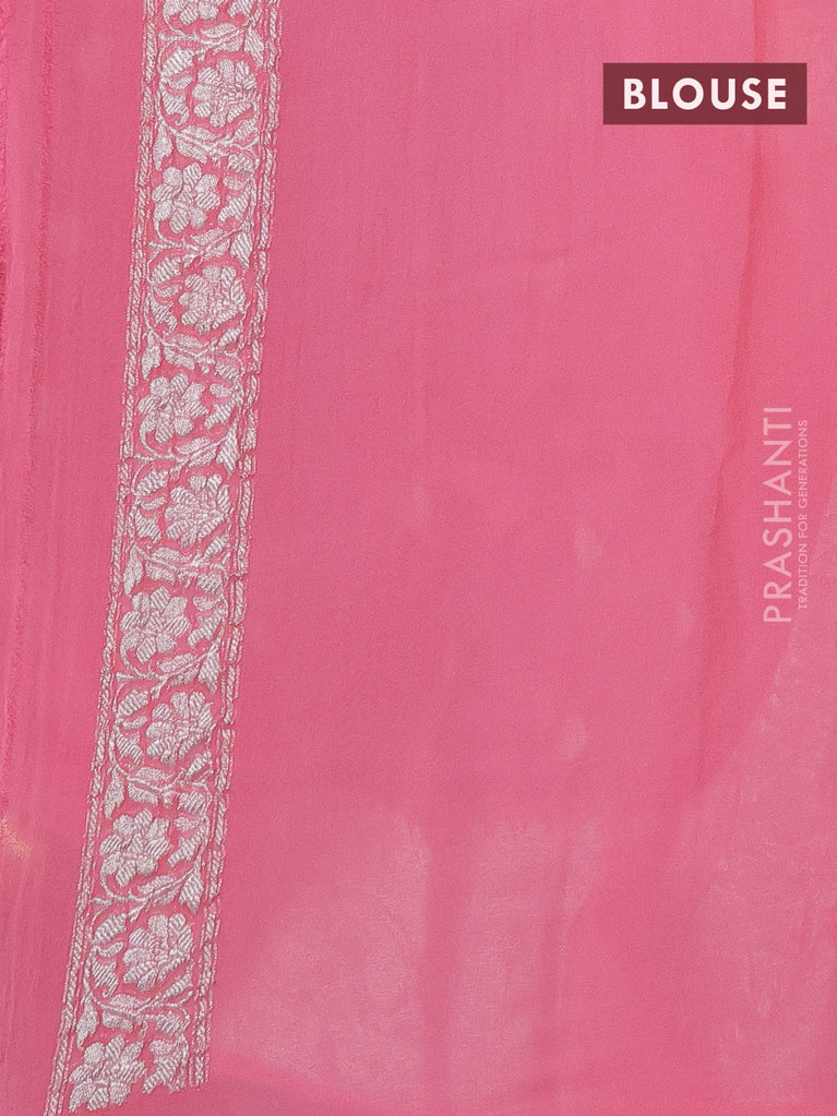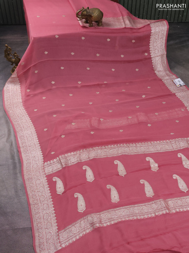 Banarasi chiffon silk saree pink with silver zari woven buttas and silver zari woven border