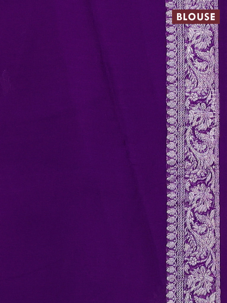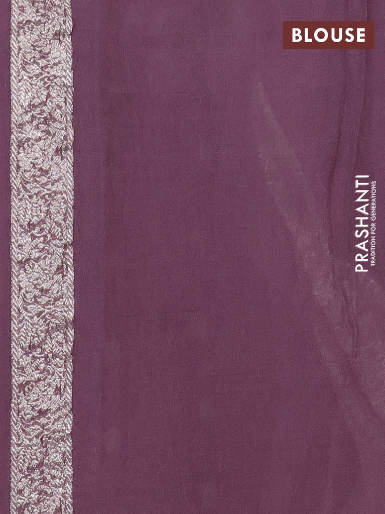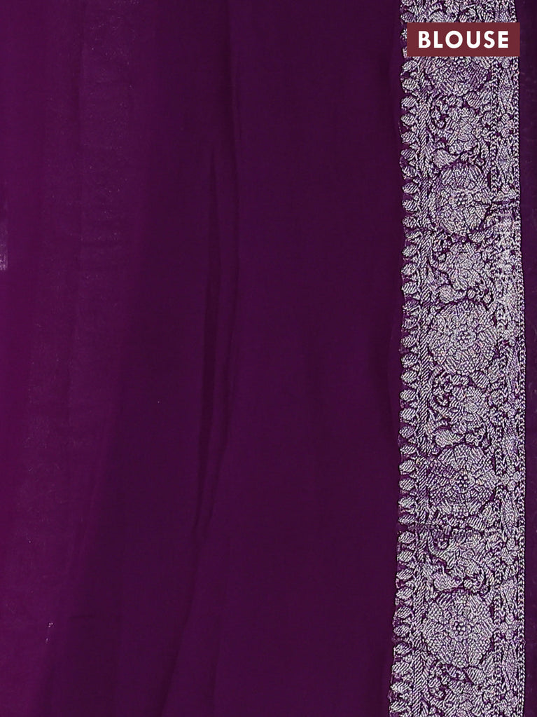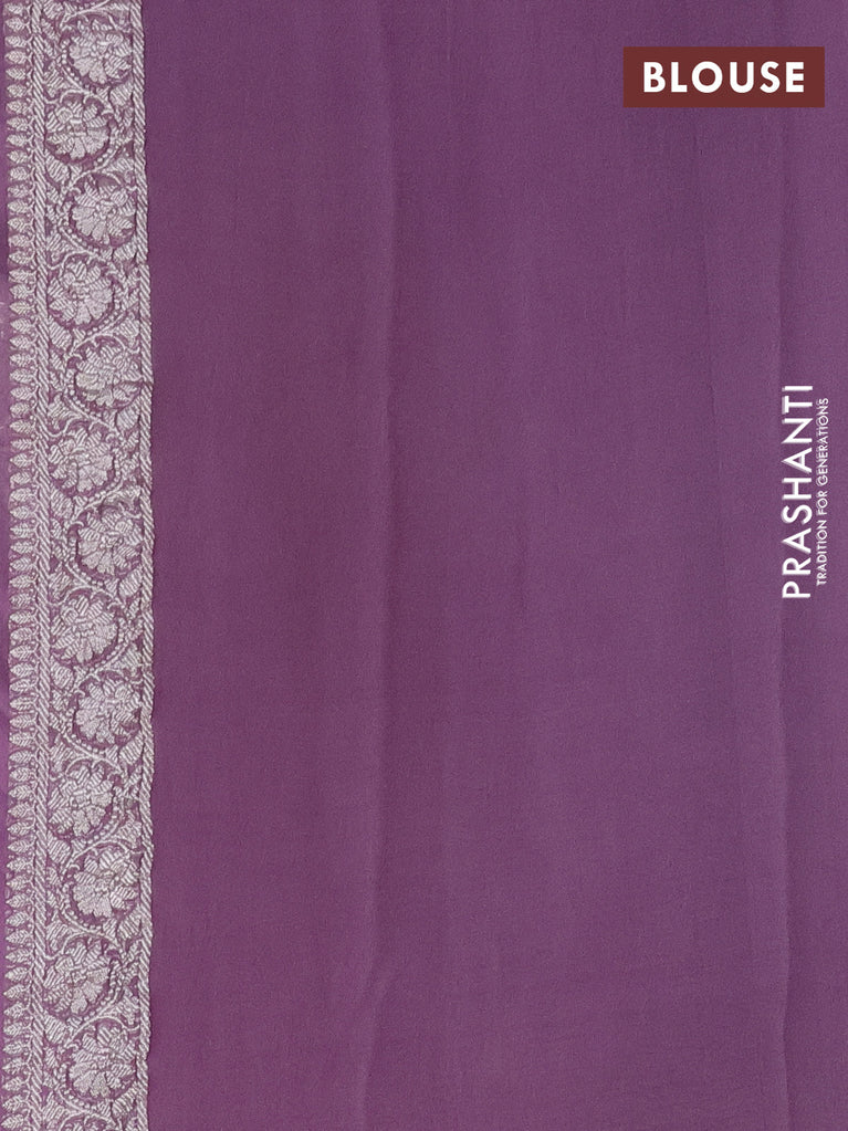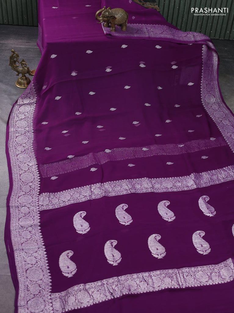Banarasi chiffon silk saree purple with silver zari woven buttas and floral silver zari woven border