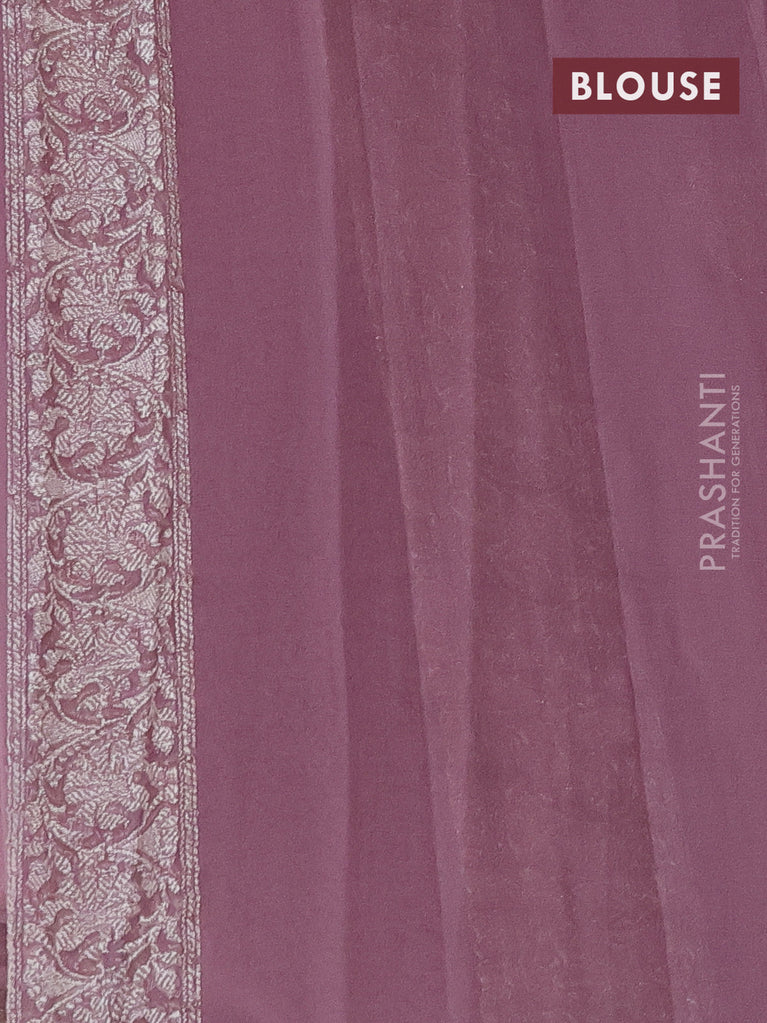 Banarasi chiffon silk saree pastel wine shade with silver zari woven buttas and silver zari woven border