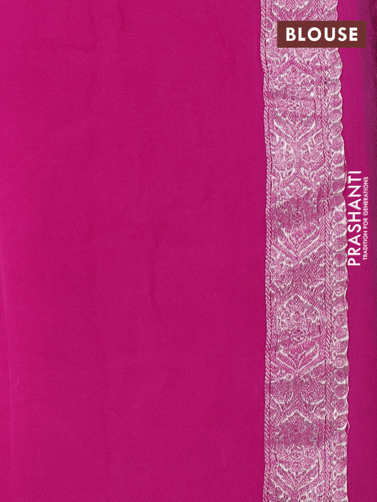 Banarasi chiffon silk saree pink and purple with silver zari woven buttas and silver zari woven border