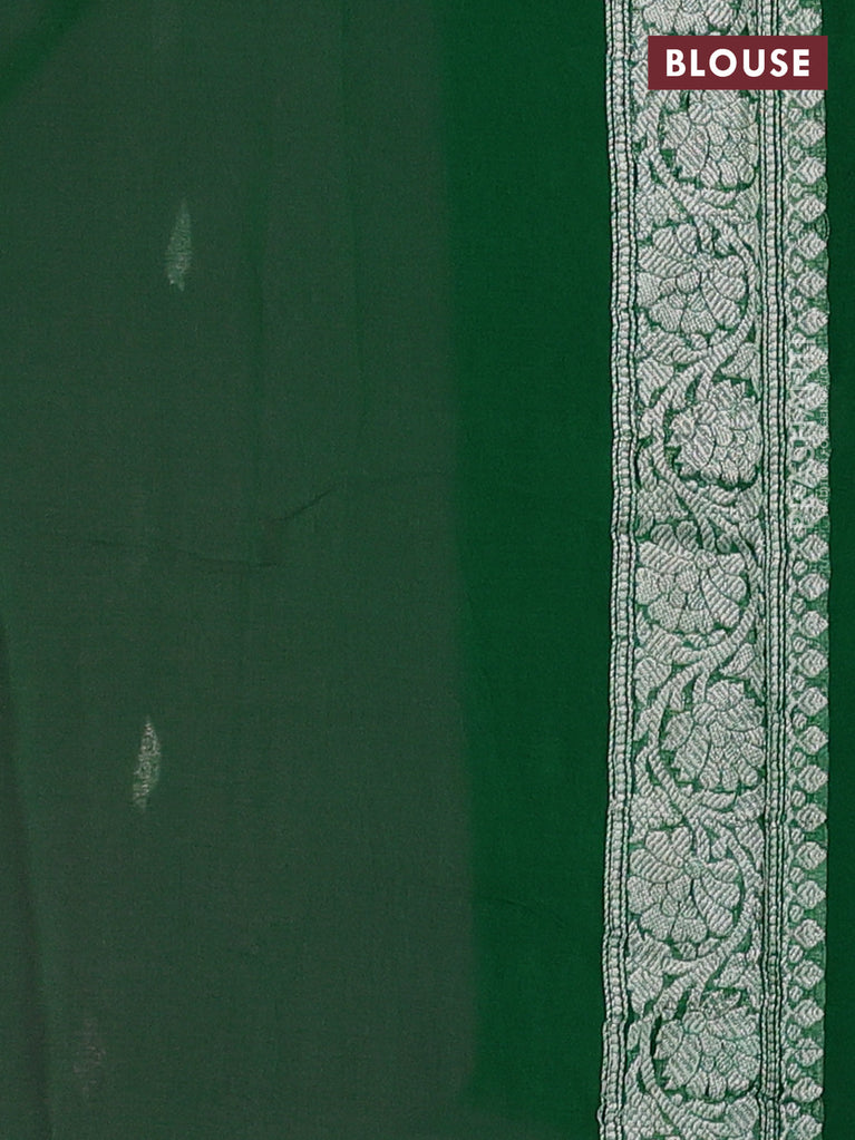 Banarasi chiffon silk saree peacock green and teal green shade with silver zari woven buttas and floral silver zari woven border