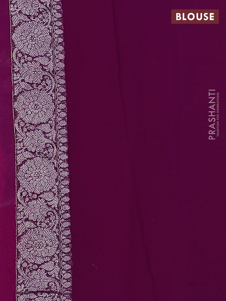 Banarasi chiffon silk saree purple and green with silver zari woven buttas and floral silver zari woven border
