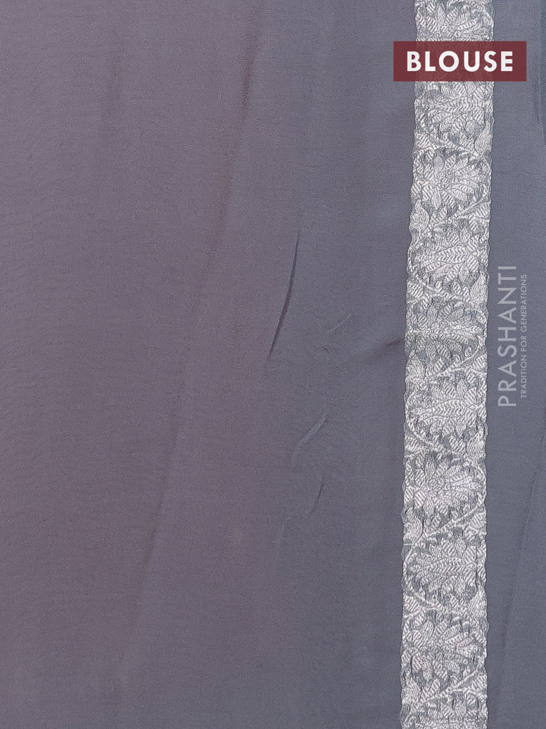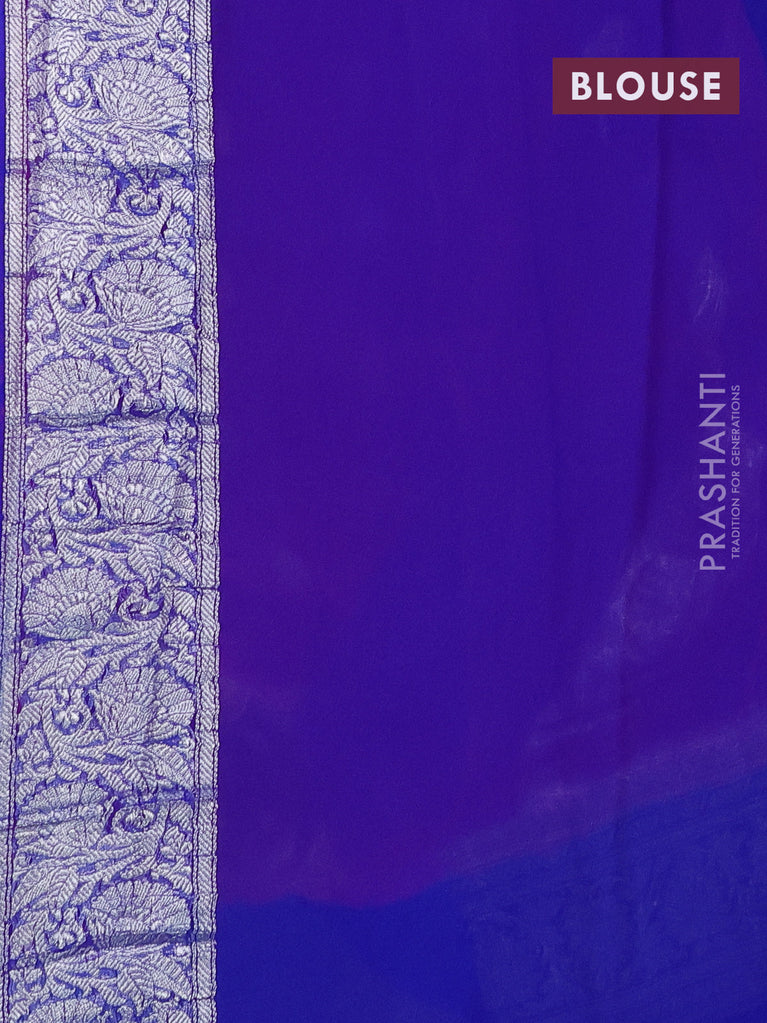 Banarasi chiffon silk saree purple and cs blue with silver zari woven buttas and silver zari woven border