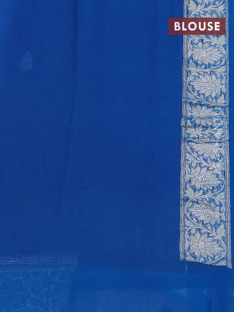 Banarasi chiffon silk saree peacock blue with silver zari woven buttas and floral silver zari woven border