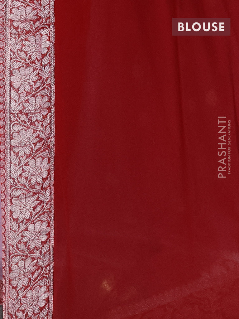 Banarasi chiffon silk saree red and light pink with silver zari woven buttas and silver zari woven border