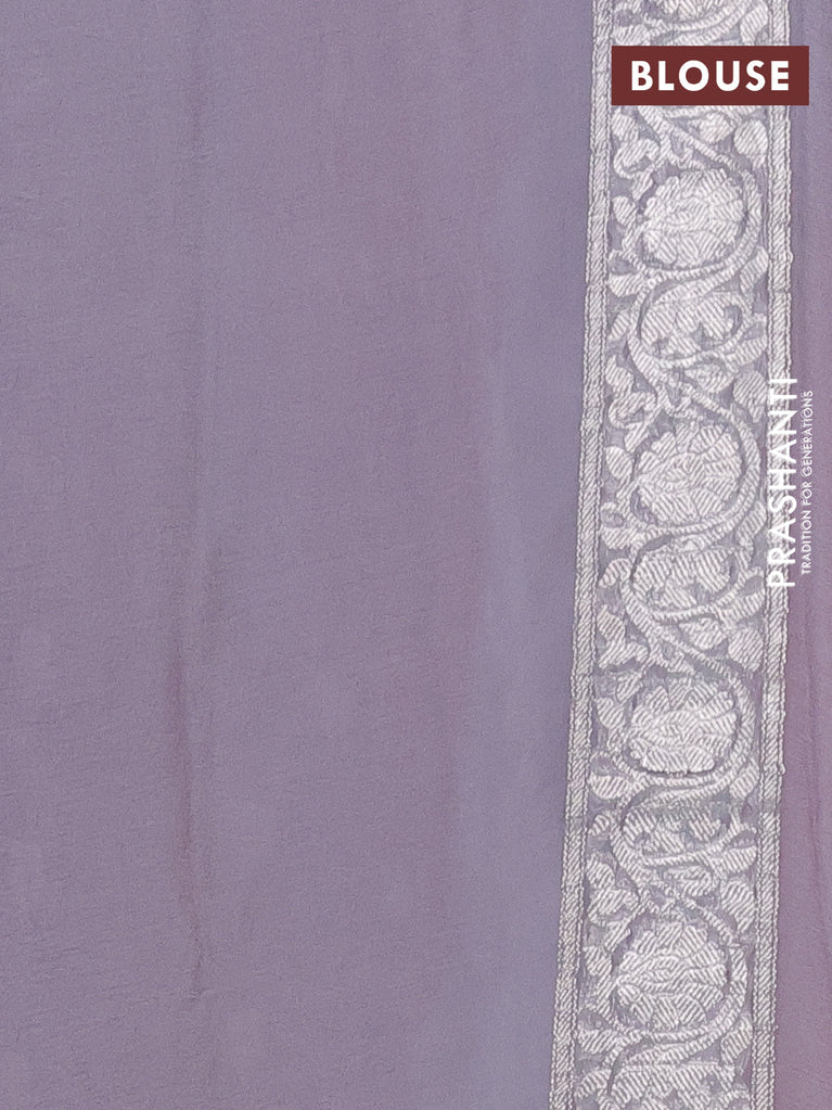 Banarasi chiffon silk saree pastel purple with silver zari woven buttas and silver zari woven border