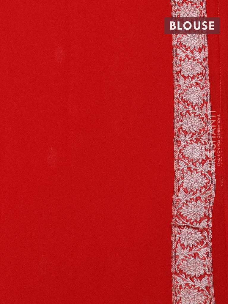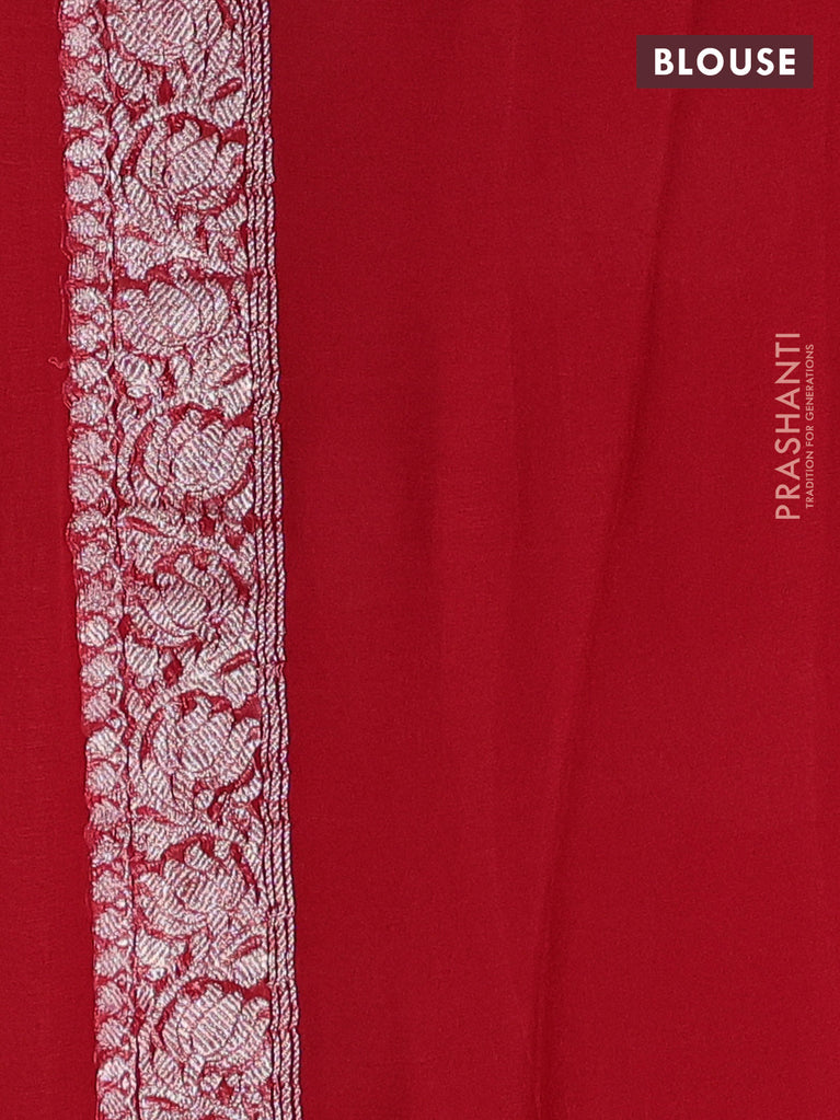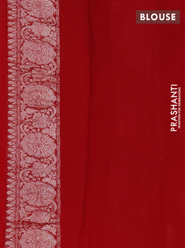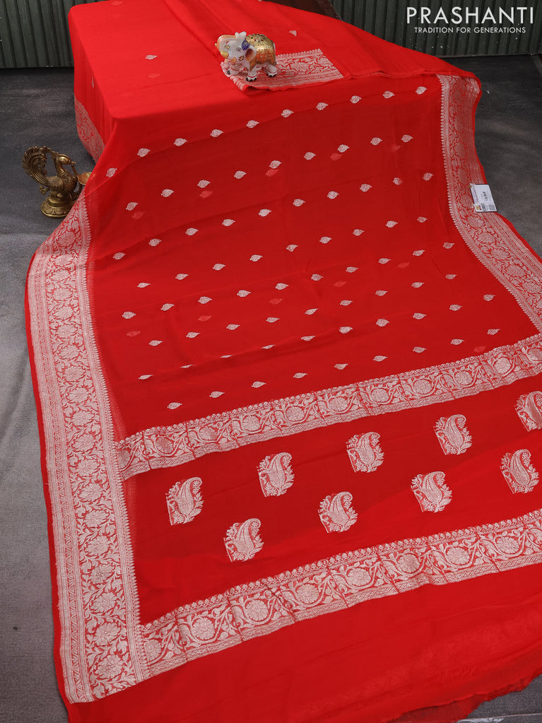 Banarasi chiffon silk saree red with silver zari woven buttas and silver zari woven border