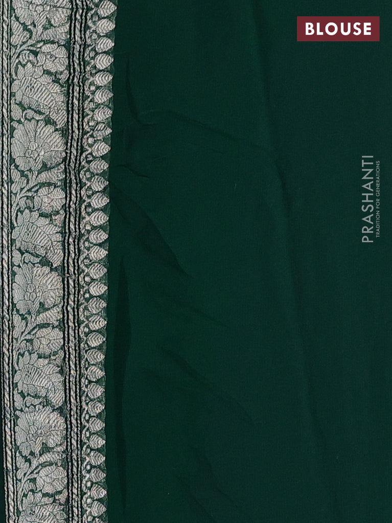 Banarasi chiffon silk saree teal green shade with silver zari woven buttas and silver zari woven border