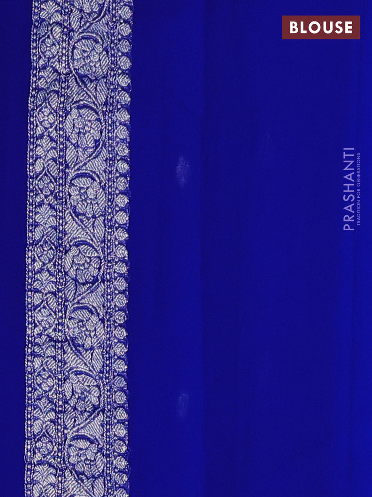 Banarasi chiffon silk saree royal blue with silver zari woven buttas and floral silver zari woven border