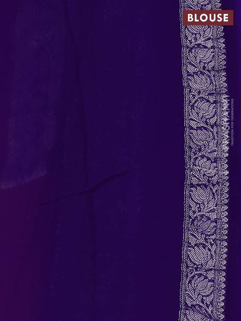 Banarasi chiffon silk saree violet with silver zari woven buttas and silver zari woven border