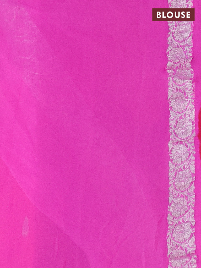 Banarasi chiffon silk saree rust shade and magenta pink with silver zari woven buttas and floral silver zari woven border
