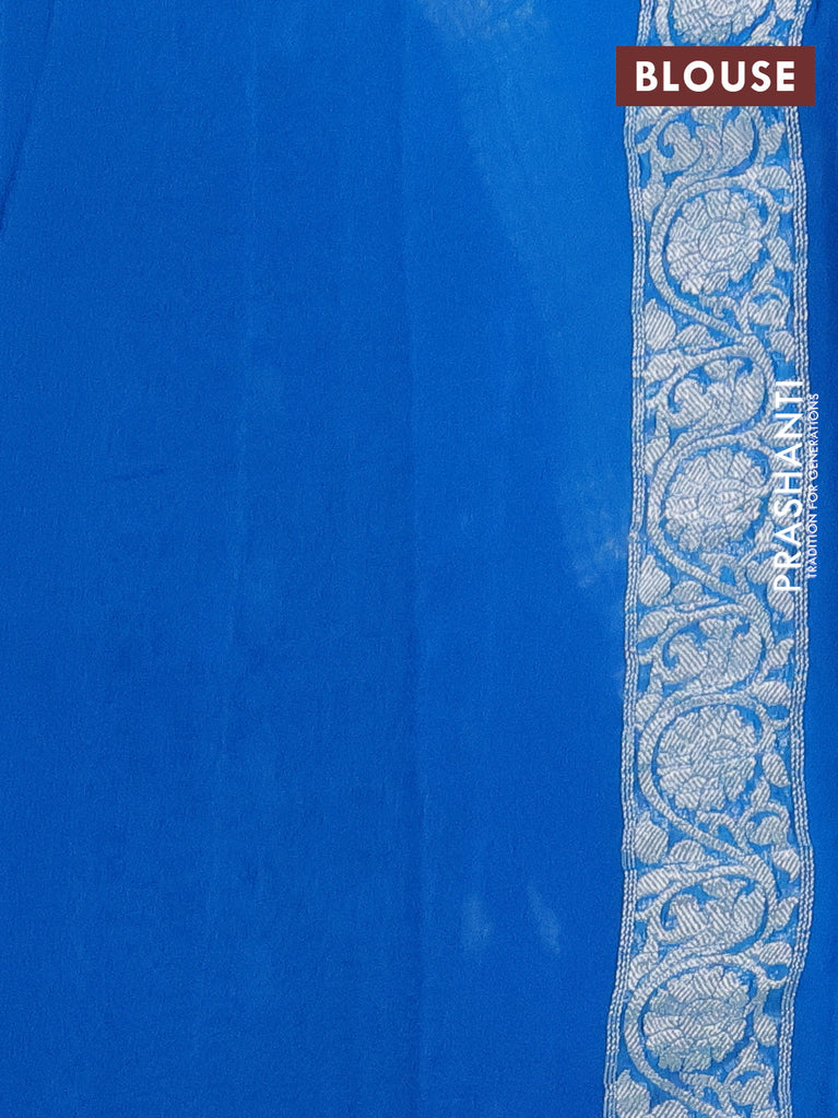 Banarasi chiffon silk saree royal blue and cs blue with silver zari woven buttas and silver zari woven border