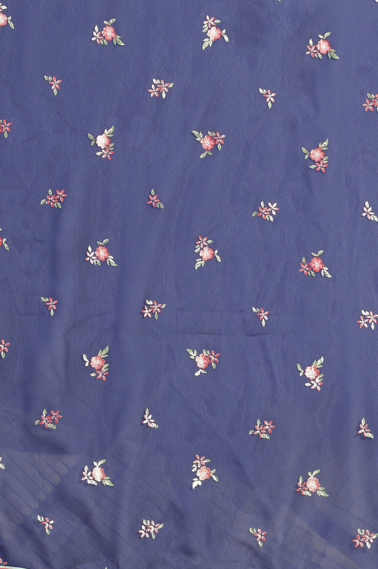 Blue Floral Printed Embellished Flared Kurta, Tights and Dupatta Set