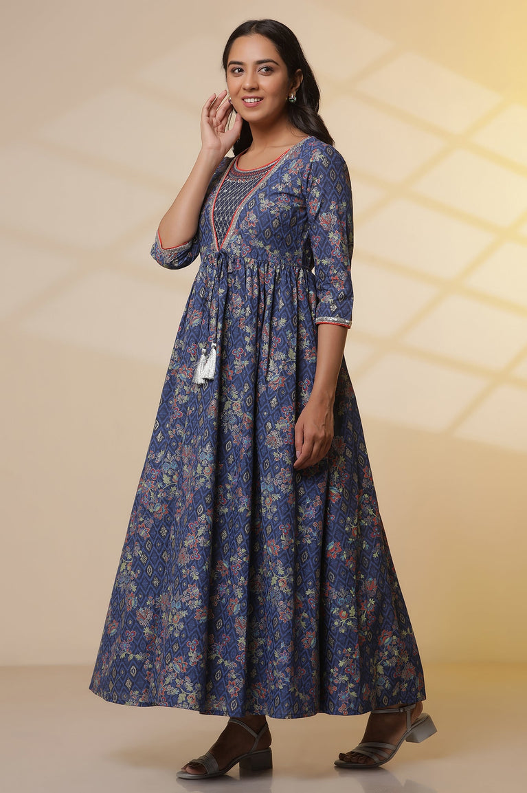 Blue Floral Printed Kurta Kansai Thread