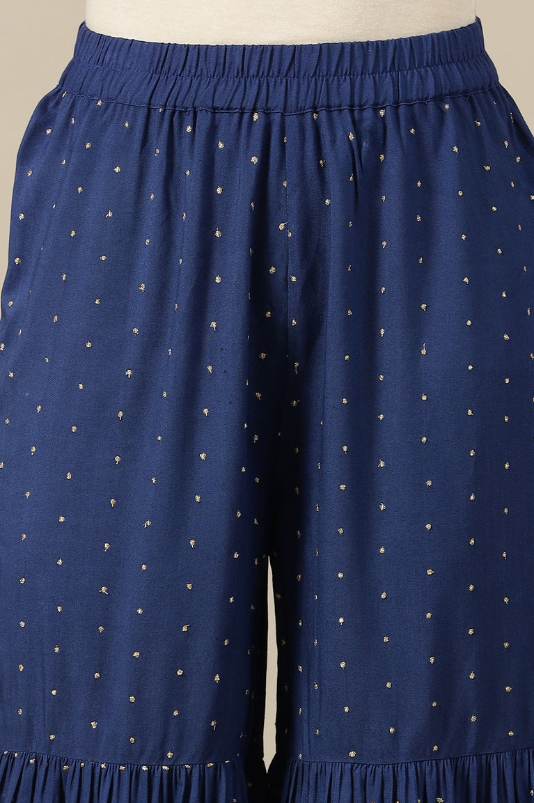 Be dressed la mode this festive season. Perfect for all occasions, this kurta set contains a blue all-over striped foil print kurta well-matched with solid palazzos.