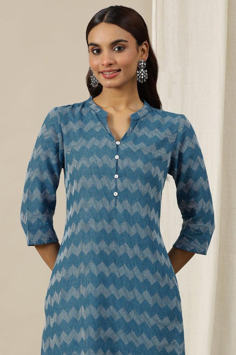 For Your Comfy And Stylish Summer Look, We Have Got You This Pretty And Elegant Blue Geometric Print Kurta By Aurelia. The Kurta Has Band Collar With Button Placket.