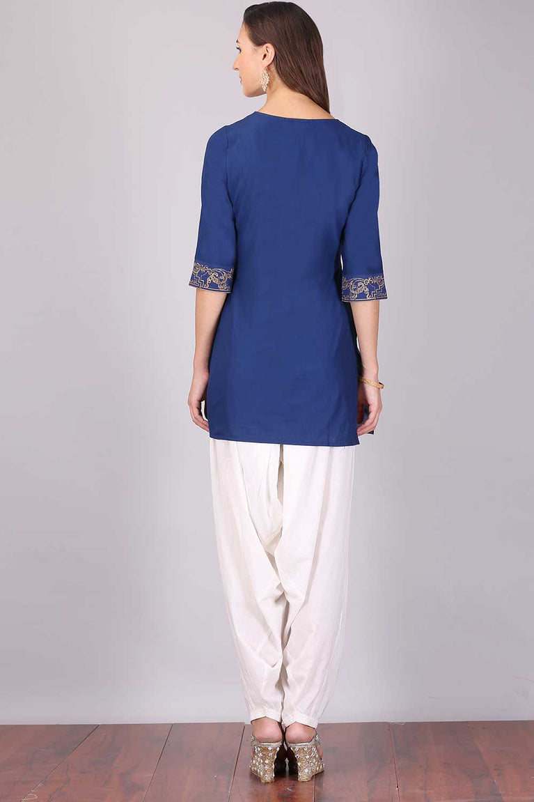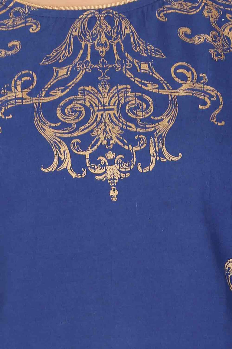 Blue Round Neck 3/4 Sleeve Printed kurta