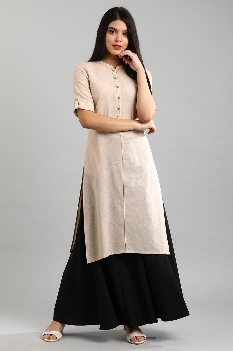 Crafted with micro-pleated precision, this black flared sharara offers a blend of comfort and style. The partial elasticized waist belt ensures a snug fit, while the two functional side seam pockets add practicality. Perfect for festive occasions, this woven sharara can be paired with a kurta, kurti, short tops, or crop-tops for a versatile look.
