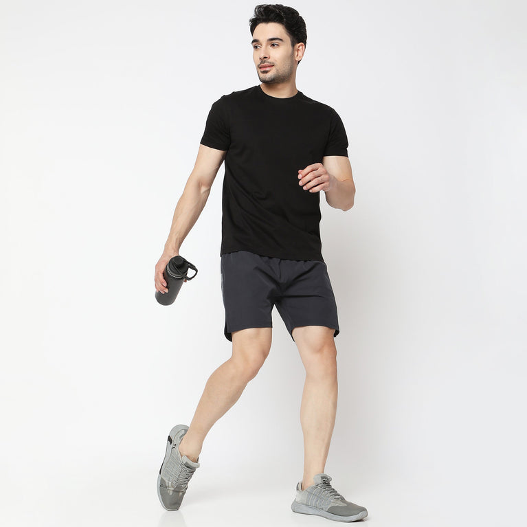 These Black Regular Fit Short Regular Mid Rise waist. Made from Cotton Spandex, it is soft and comfortable to wear.