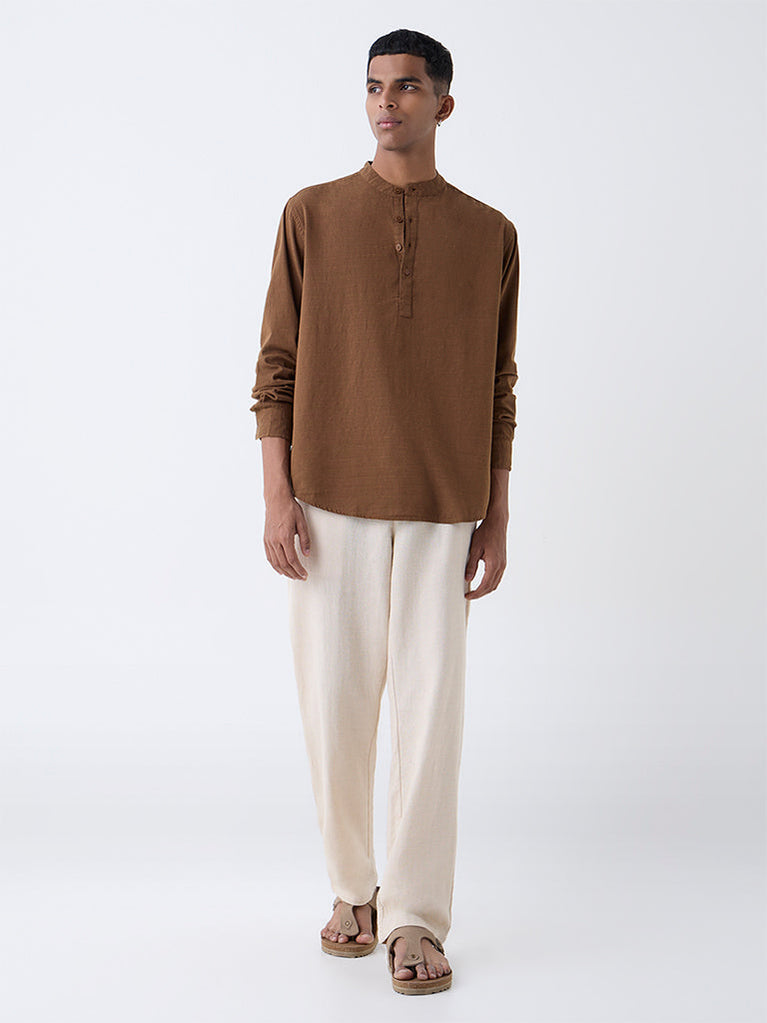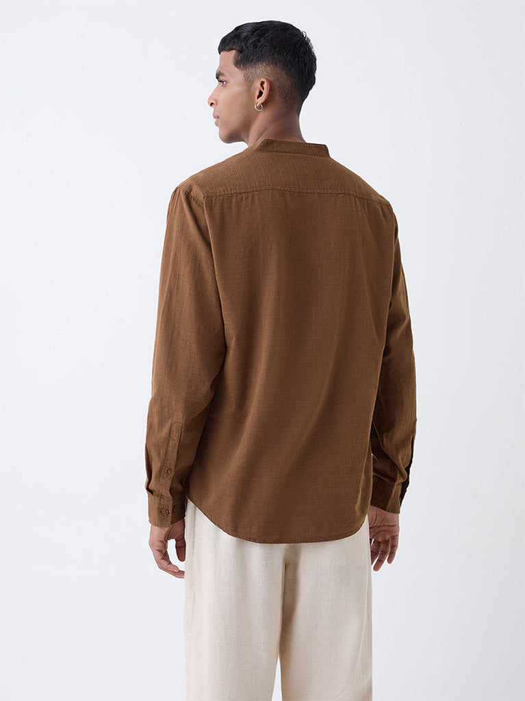 ETA Brown Solid Relaxed-Fit Cotton Shirt