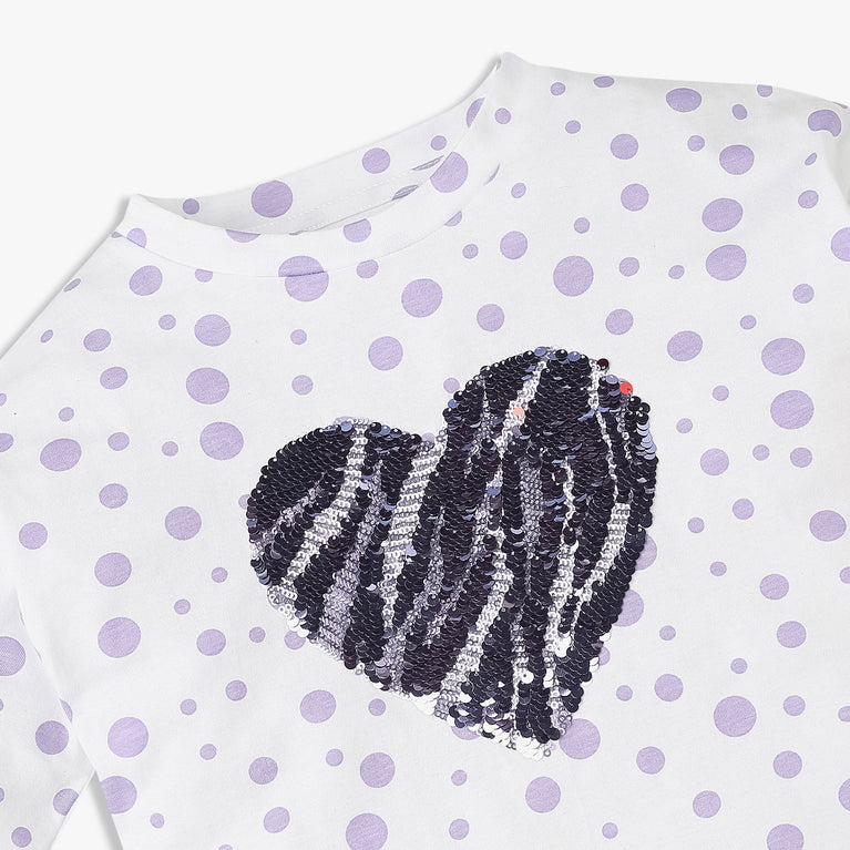Introducing the Girls Embellished Cotton Pop Sweat Tee, a stylish addition to any young girl's wardrobe. Crafted from soft cotton and designed with a chic embellished pattern, this tee combines comfort and flair effortlessly.