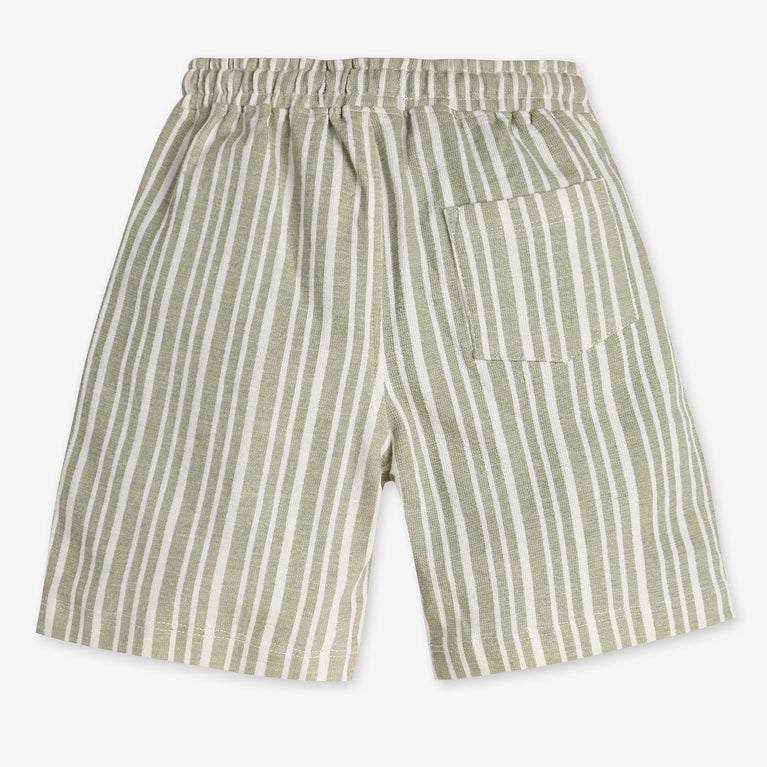 Experience the perfect blend of comfort and style with these boys' cotton striped shorts. Crafted from Cotton polyester elastane, these shorts offer a soft touch against the skin, ensuring all-day comfort for your little one. The woven fabric provides durability, making them ideal for active play and adventures.