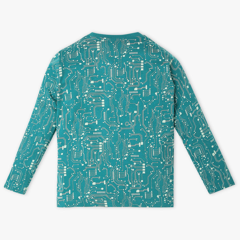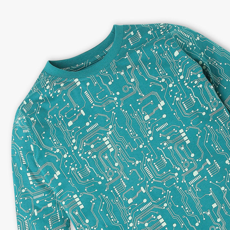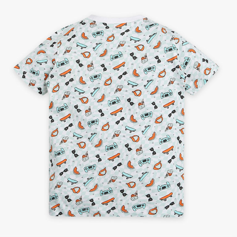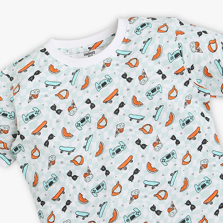 Boys Crew Neck Full Length Sleeve Sleep Set All Over Print Snooze -Half T-Shirt