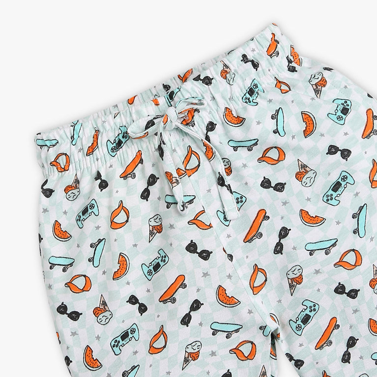 Wrap your little one in the ultimate comfort with our Boys Cotton T-Shirt Sleepwear Set. Crafted from 100% cotton, this set promises a soft touch against the skin, ensuring a cozy night's sleep. The playful all-over print adds a dash of fun, making bedtime something to look forward to.
