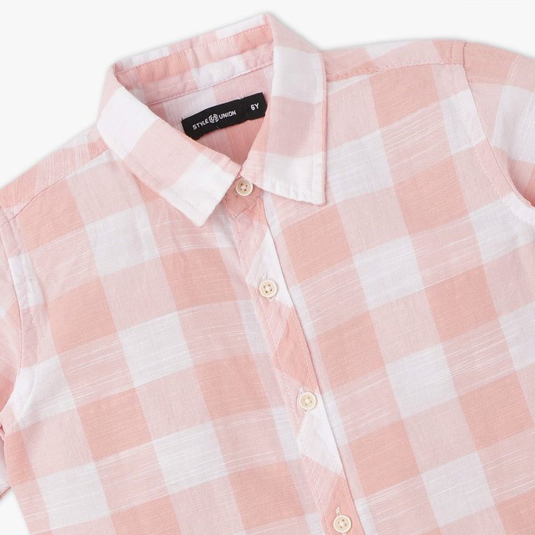 Boys Half Sleeve Shirt Collar Checkered Shirt