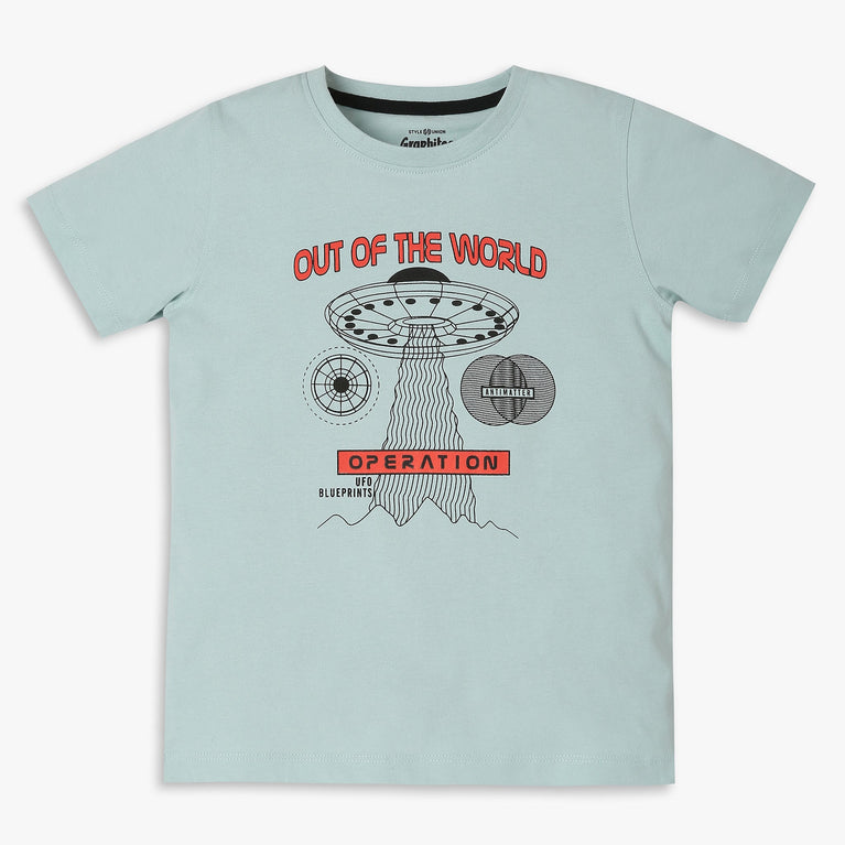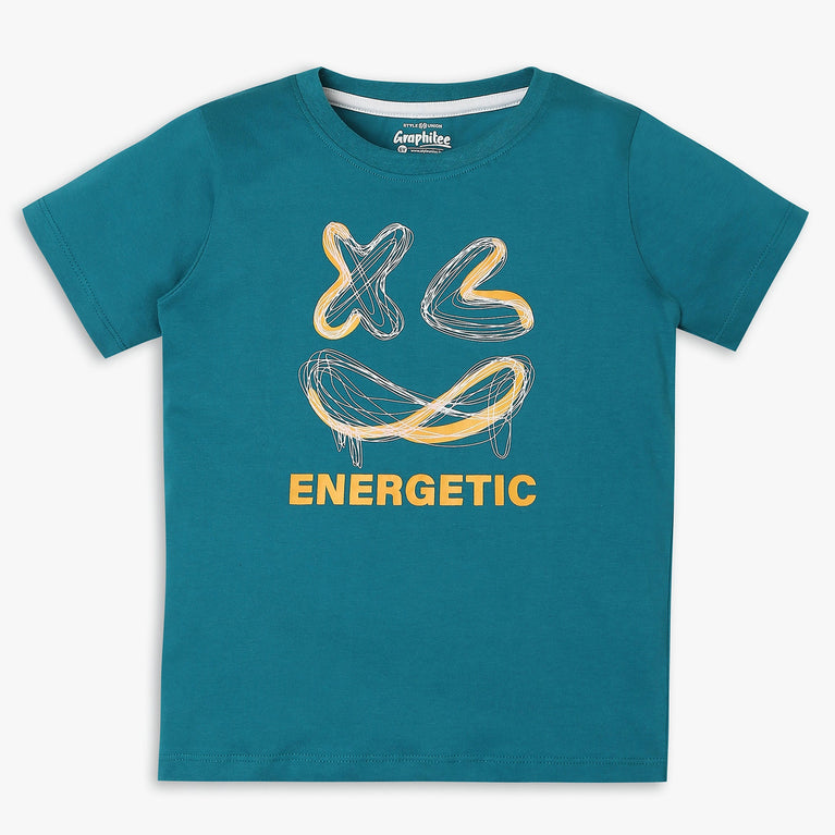 These graphic t shirt theme, graphic pattern t-shirt has crew neck and half sleeve. Made from cotton, your kid's feel comfortable wearing the product.