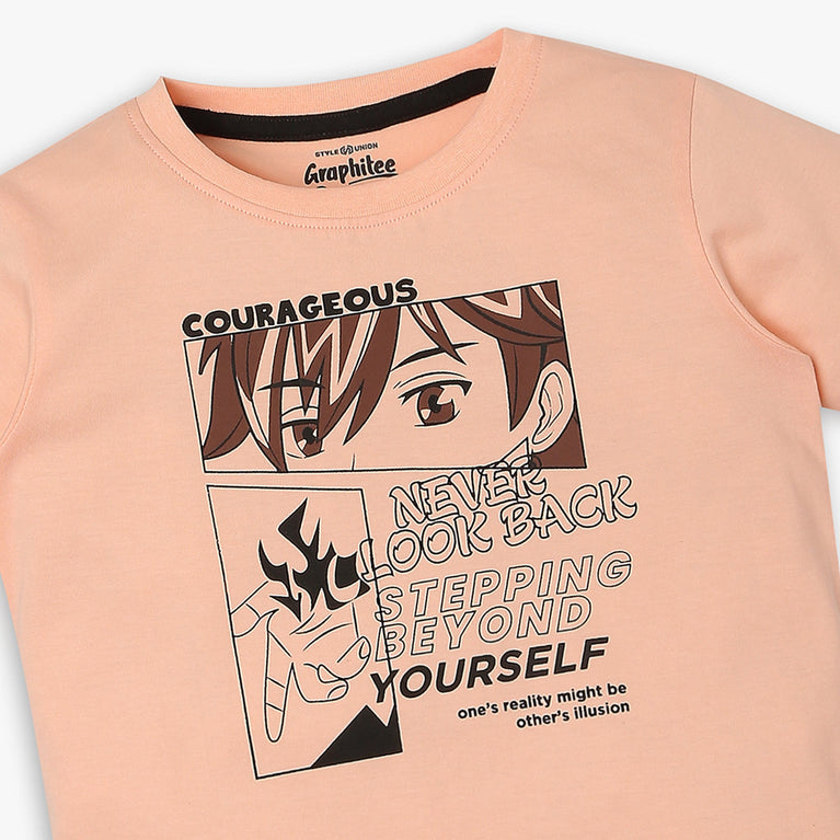 These graphic pattern t-shirt has crew neck and half sleeve. Made from cotton, your kid's feel comfortable wearing the product.