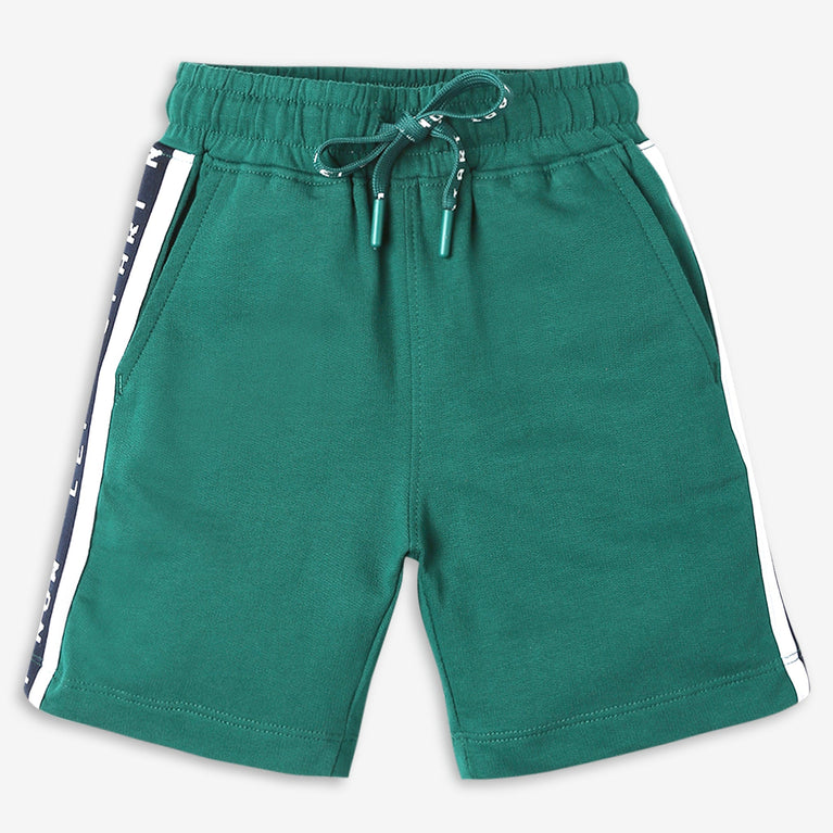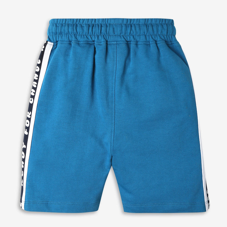These world wide music theme, solid pattern regular fit shorts has mid rise waist. Made from cotton, your kid's feel comfortable wearing the product.