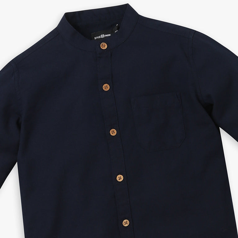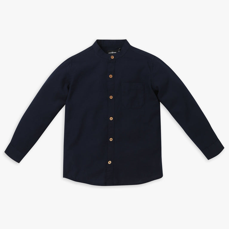 These solid pattern shirt has band collar and full sleeve. Made from Cotton, your kid's feel comfortable wearing the product.