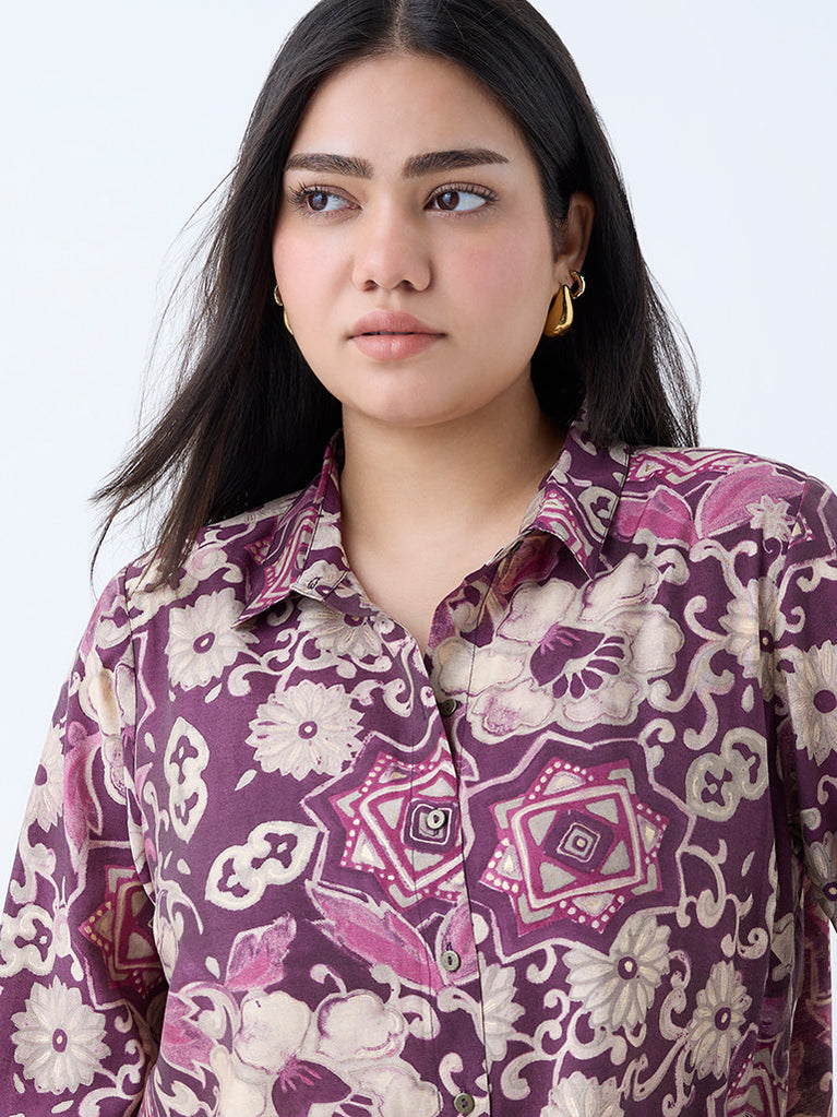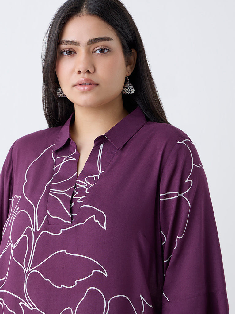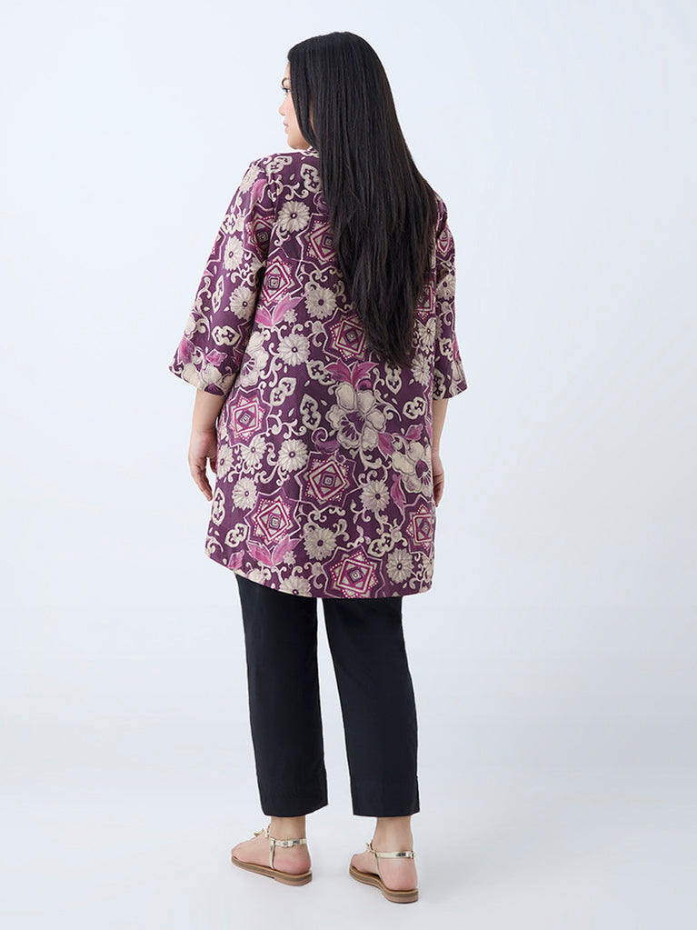 This plum tunic from Diza is designed for the woman who values ease with elegance. Crafted from breathable fabric, it’s detailed with delicate floral prints that lend a festive charm. The V-neck extends into a button placket, complemented by three-quarter sleeves for a polished yet relaxed look that transitions effortlessly through the day.