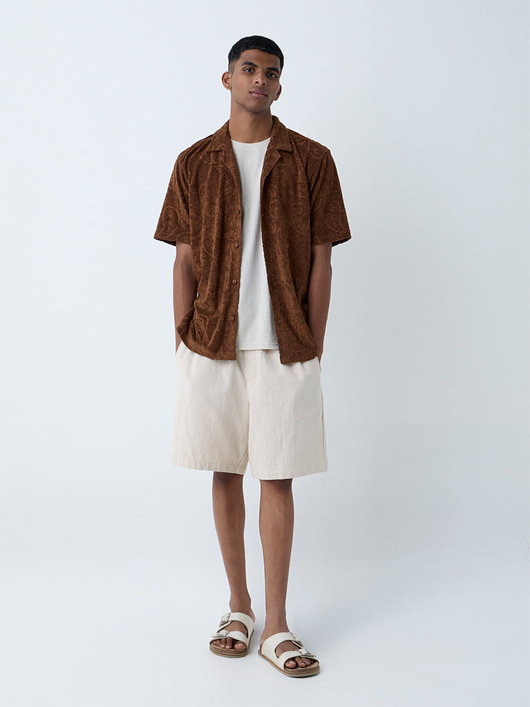 ETA Dark Brown Textured Relaxed-Fit Cotton-Blend Shirt