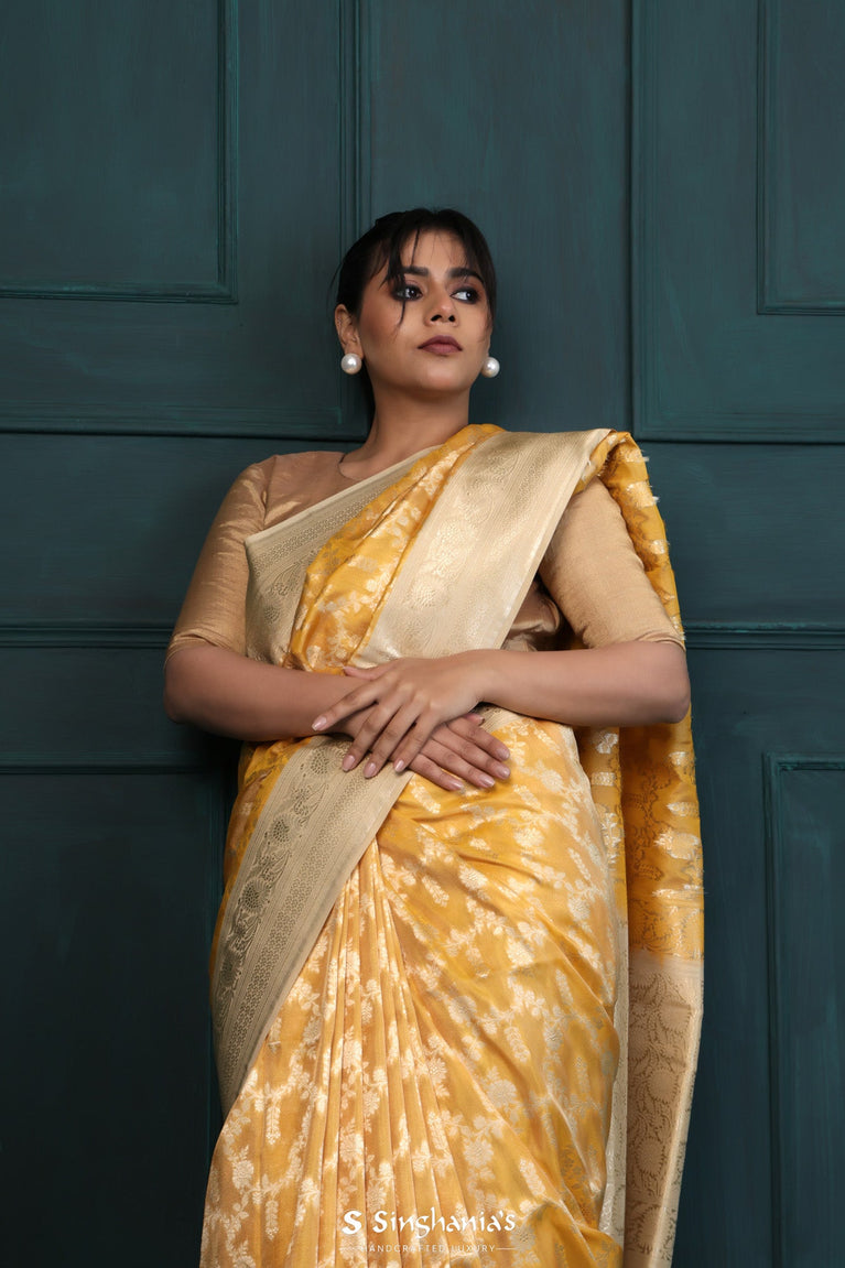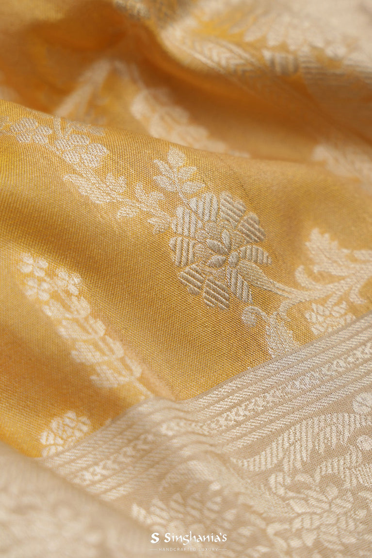 Gold Yellow Floral Jaal Kanjivaram Silk Saree