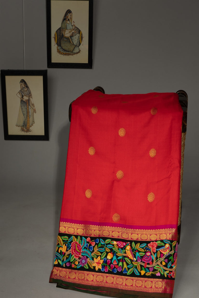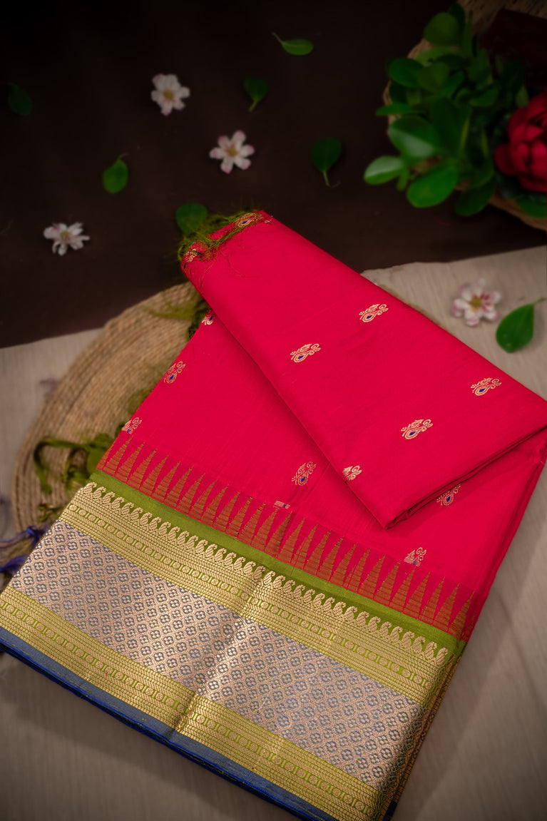 Mandir Red & Pink Kanchipuram Buttis Saree