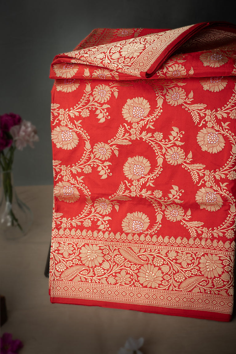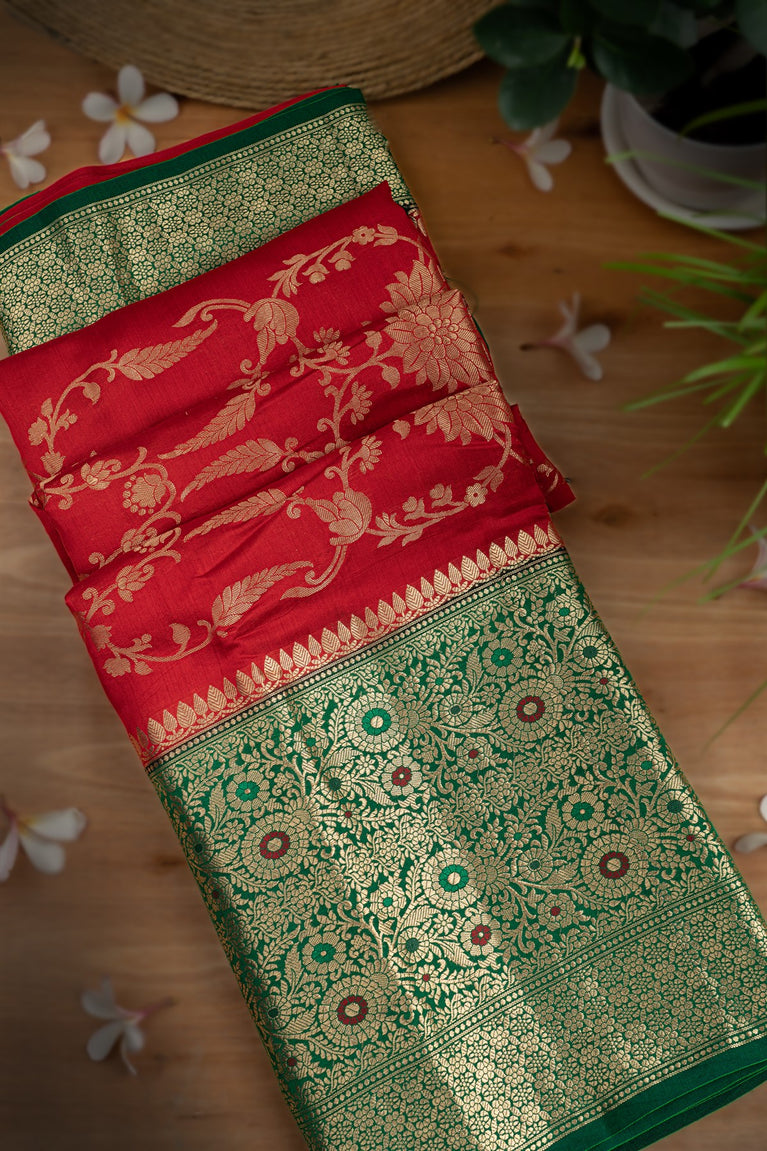 Mandir Red & Gold Banarasi Floral Jaal Saree