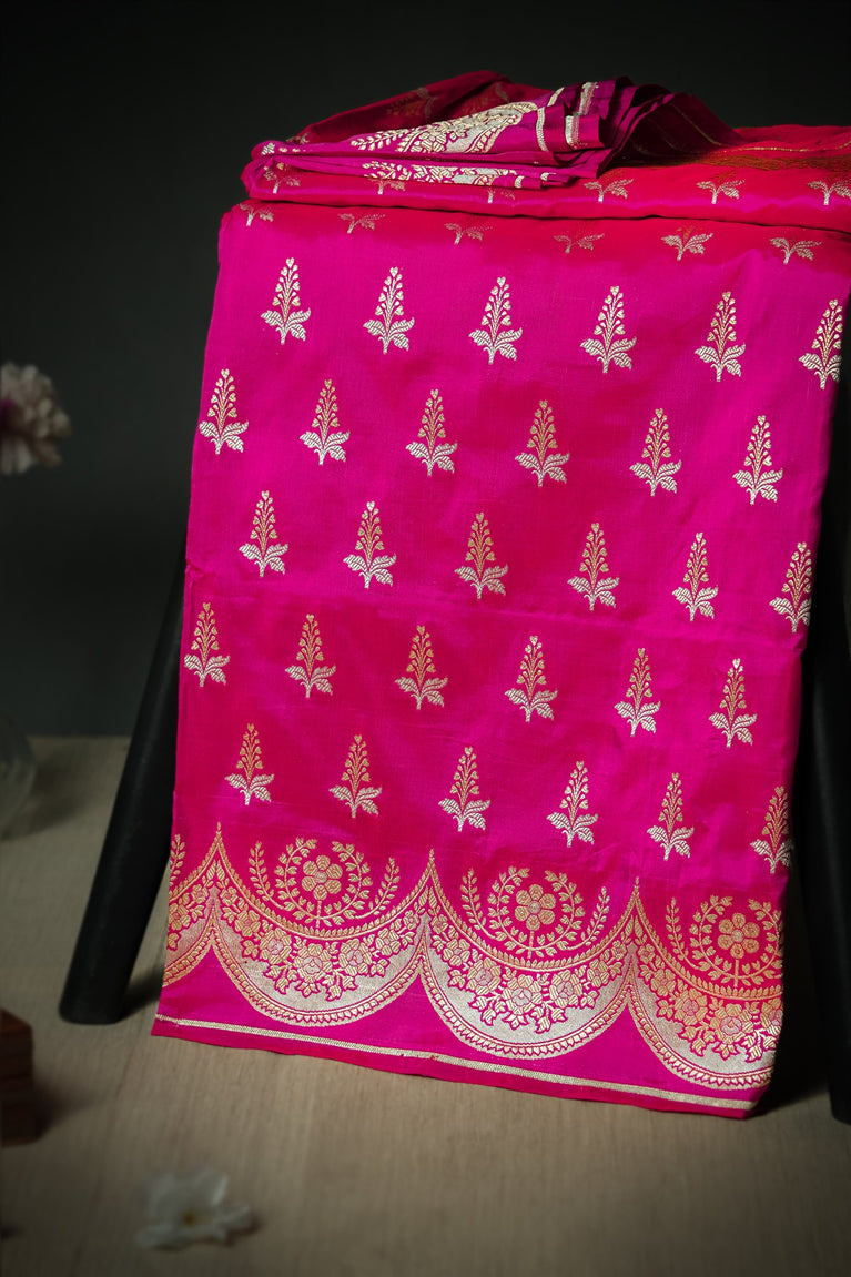 Mandir Rani Pink & Gold Banarasi Motifs Saree