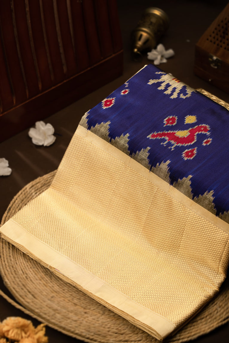 Mandir Royal Blue & Cream Ikat Plain Saree