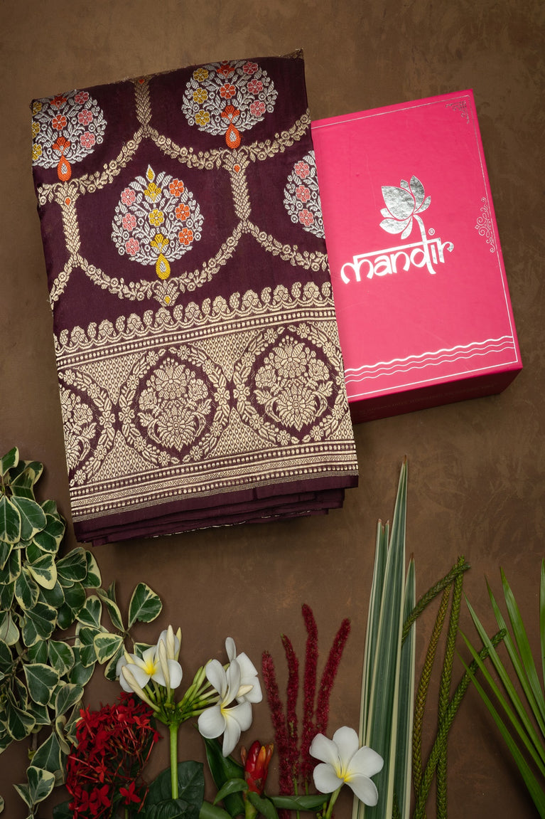 Mandir Violet & Maroon Fancy Floral Jaal Saree