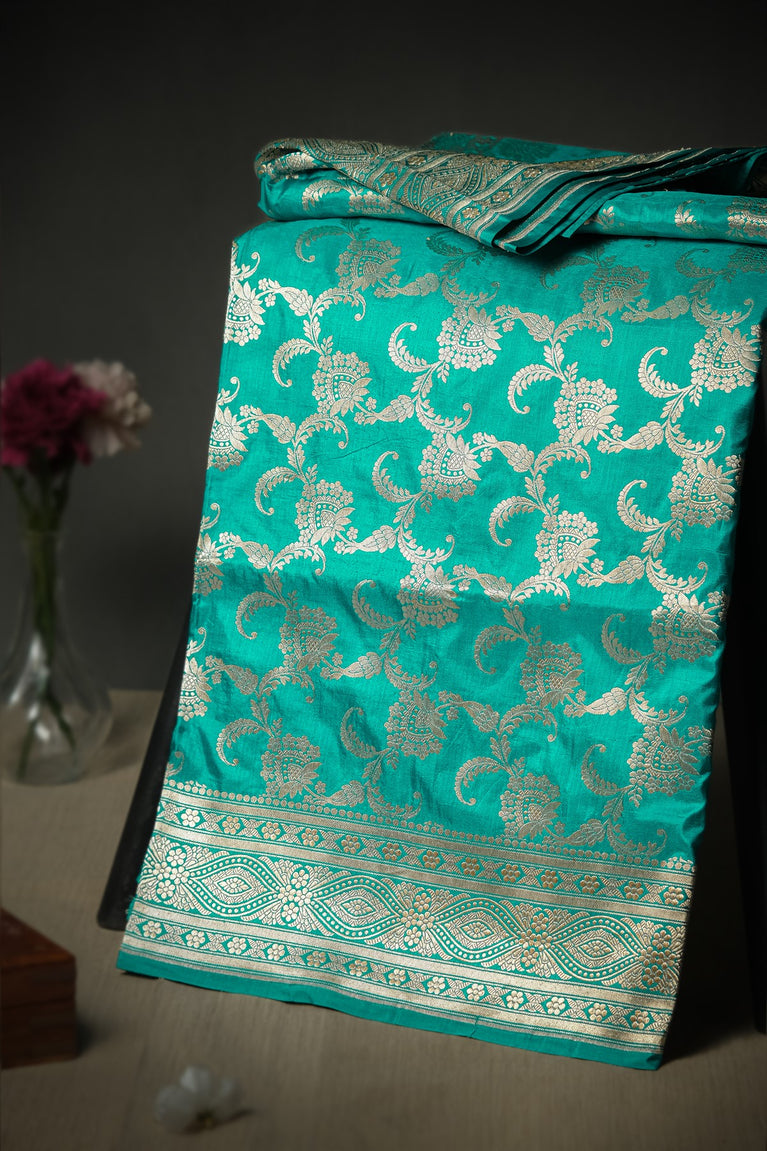 Mandir Stone Blue & Stone Blue Kanchipuram Cross Checks Saree