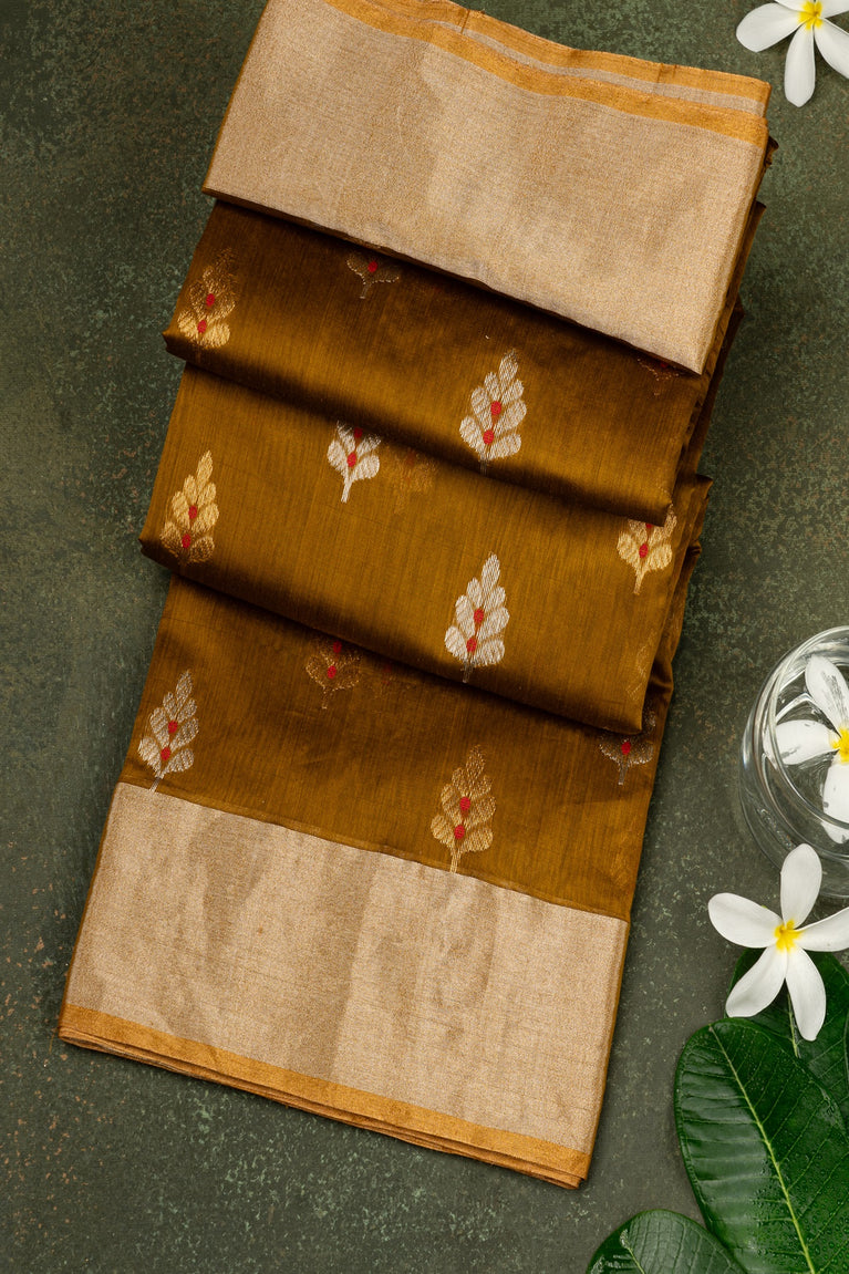 Mandir Mustard & Gold Chanderi Buttis Saree