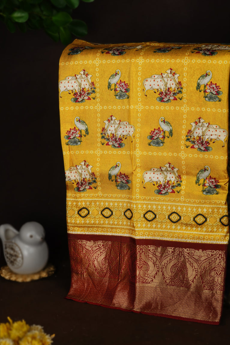 Mandir Mustard & Maroon Fancy Digital Print Saree