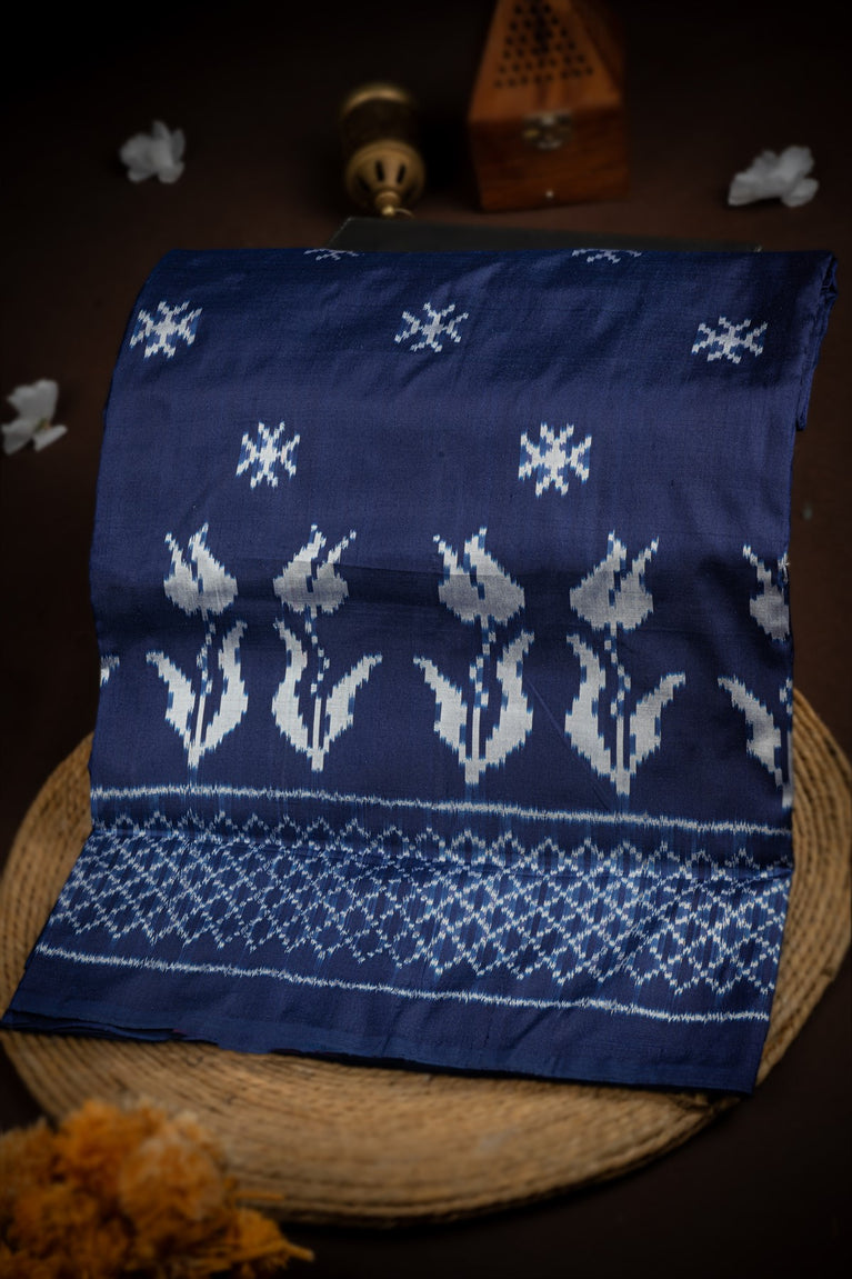 Mandir Navy Blue & Navy Blue Ikat Ikat Saree